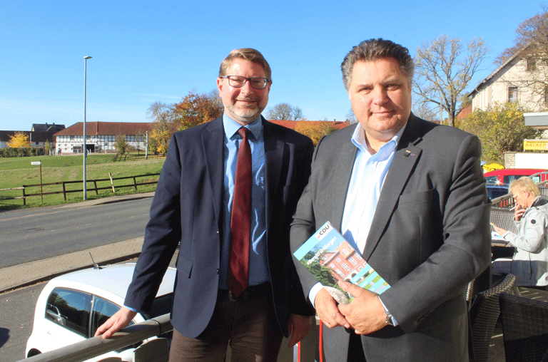 Beitragsbild: Marco Kelb und Uwe Schäfer während des Pressegesprächs zum Bürgermeisterkandidaten der CDU. Foto: Sophie Weinmann